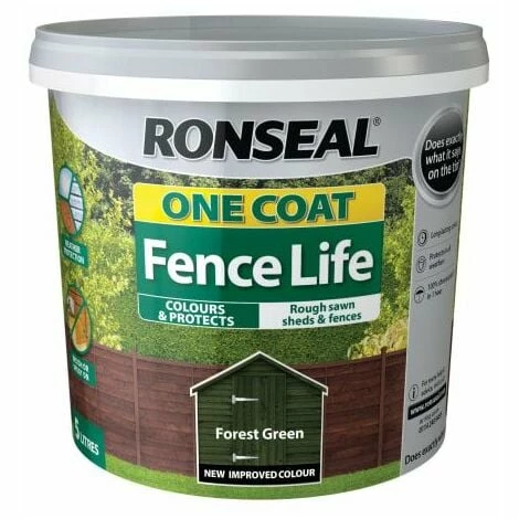 Ronseal One Coat Fence Life is an advanced, quick drying shed and fence treatment that will protect all rough sawn garden timber from the rigours of the weather with fade-resistant colour in just one coat. Safe for plants and pets.